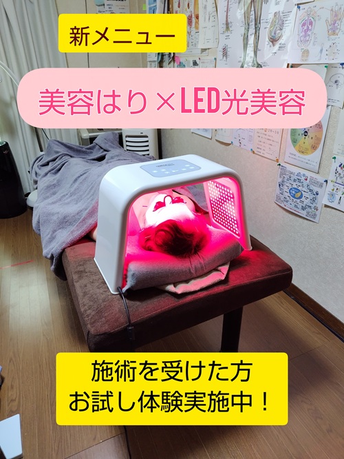 わか治療院では、鍼灸・マッサージ・美容鍼・新しく導入しました。LED光美容を組み合わせ、冷えや乾燥による不調を内側からケアする施術を行っています。日頃の健康相談に加えご要望があれば漢方相談も行っております。