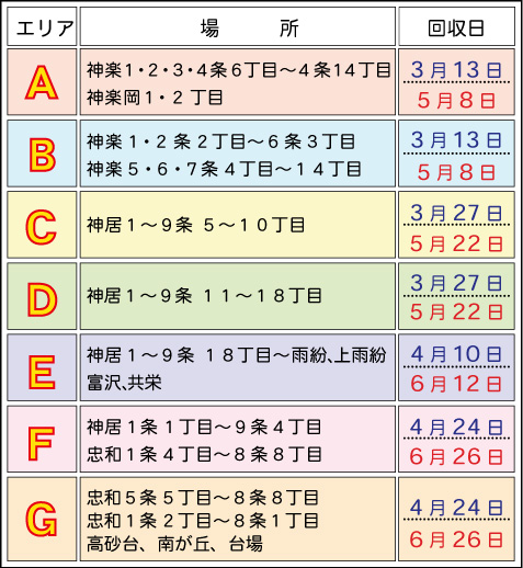 ●道路状況、天候などにより回収時間が遅れる場合があります。