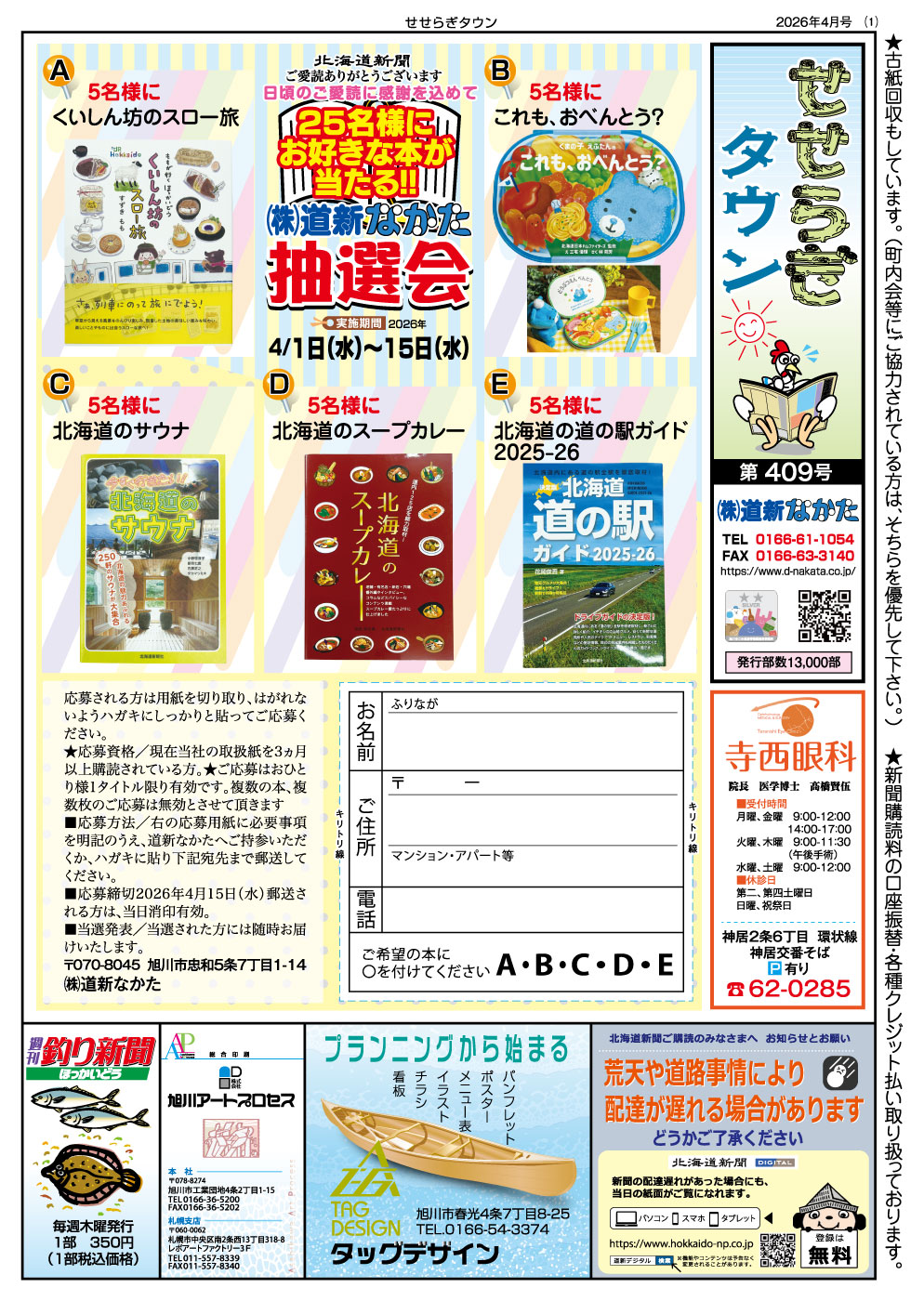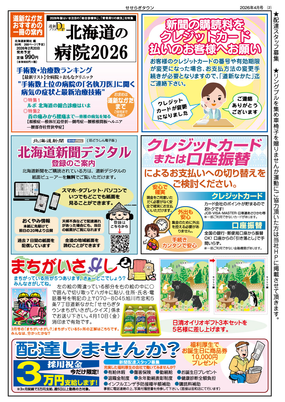 毎月1日発行の当社のミニコミ紙 せせらぎタウン(発行部数13,000部)を掲載しています